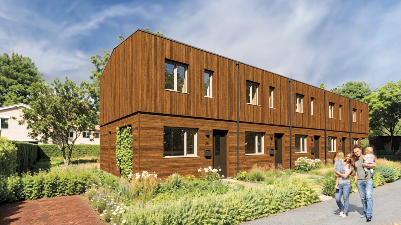 Deze woningen zijn volledig in de fabriek geproduceerd in vier of zes modules. Dat betekent dat alles, van de keuken tot de gevelbekleding, al klaar is voor de plaatsing van de modules. De modules hoeven alleen nog maar geplaatst en aangesloten te worden. Daardoor staan de woningen snel, blijft de impact op de omgeving beperkt en wordt de CO2-uitstoot tot een minimum beperkt.